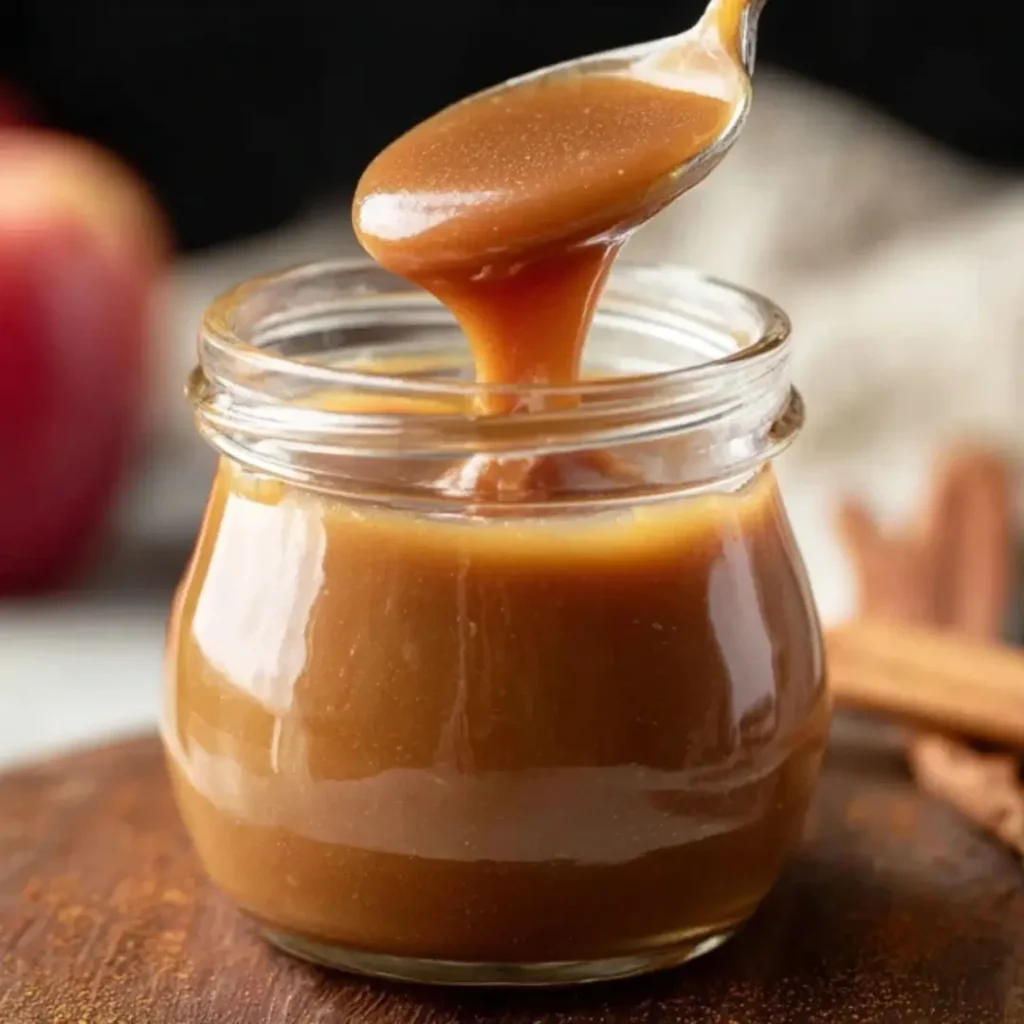 A rich and silky caramel sauce infused with reduced apple cider and warm cinnamon. Perfect for drizzling over desserts, pancakes, or stirring into drinks.
