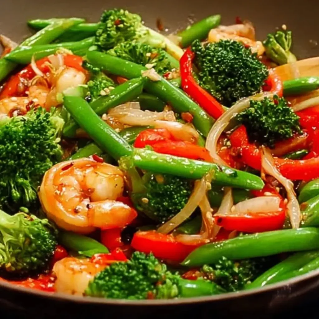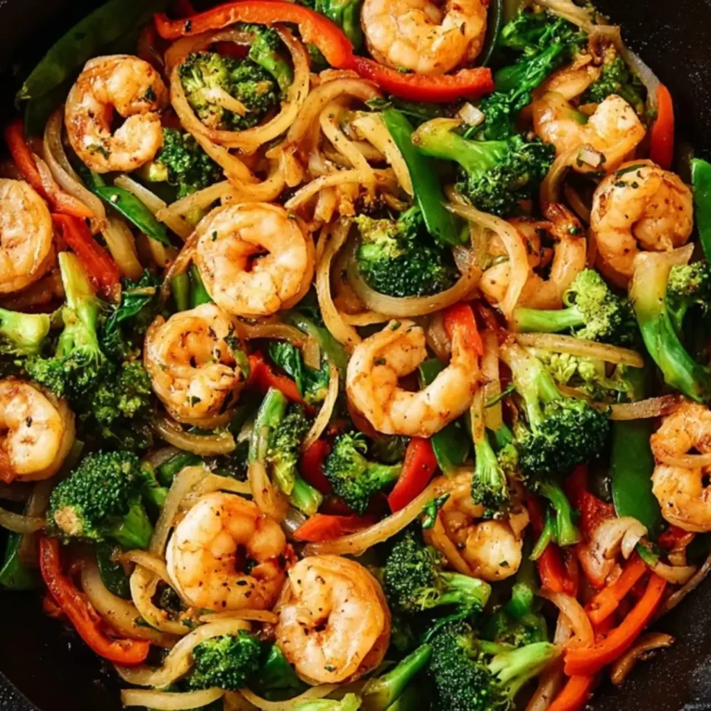 To reheat, spread the stir fry in a thin layer on a baking sheet and heat in the oven at 350°F (175°C) until warmed through, or gently reheat in a pan on the stovetop over medium heat for about 5 minutes. Avoid the microwave if possible, as it can make the shrimp chewy.