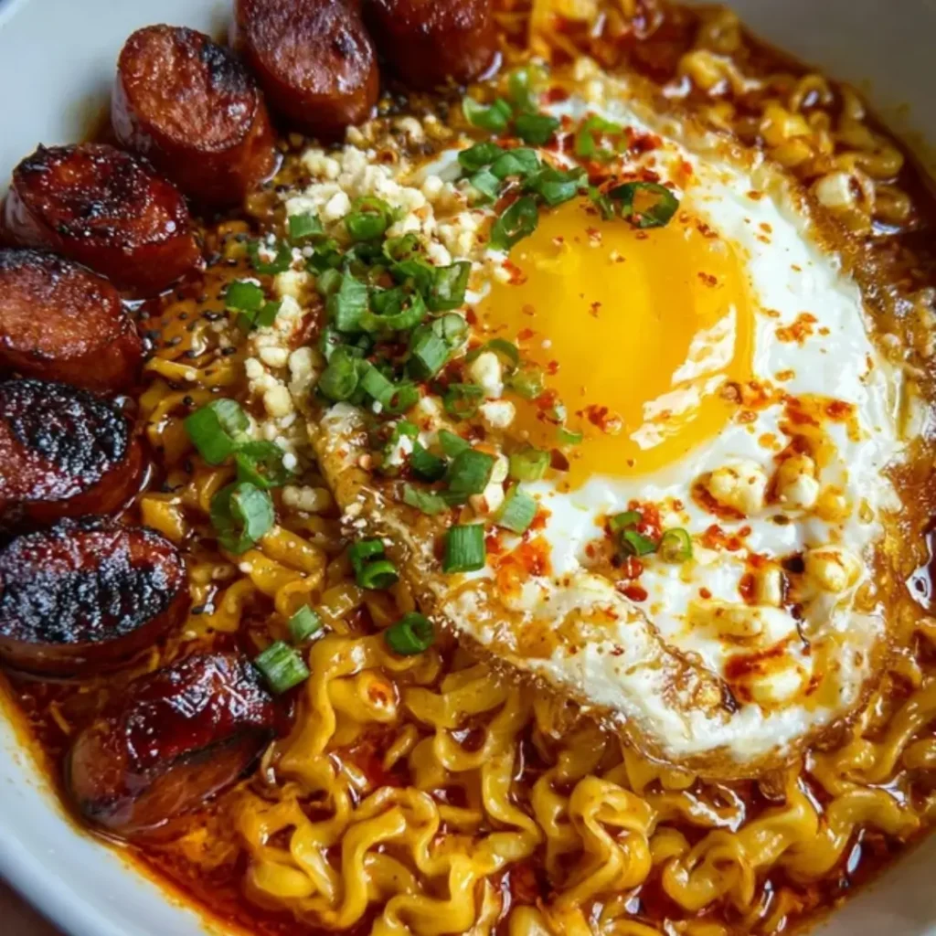 Oh. My. Goodness. Today I’m bringing you a dish that is an absolute explosion of flavor—a bowl of pure, unadulterated comfort with a serious, fiery kick! Forget those sad packets of instant ramen; we are turning them into a luscious, cheesy, and deeply savory feast that is genuinely addictive. It’s got that creamy, melt-in-your-mouth texture from the cheese and milk, combined with the savory crunch of mini sausages and a warming heat from Korean chili paste. Trust me, this Cheesy Atomic Spicy Mini Sausage Ramen Bowl is a weeknight game-changer and the ultimate cozy, spicy hug in a bowl. Get ready to have a new favorite!