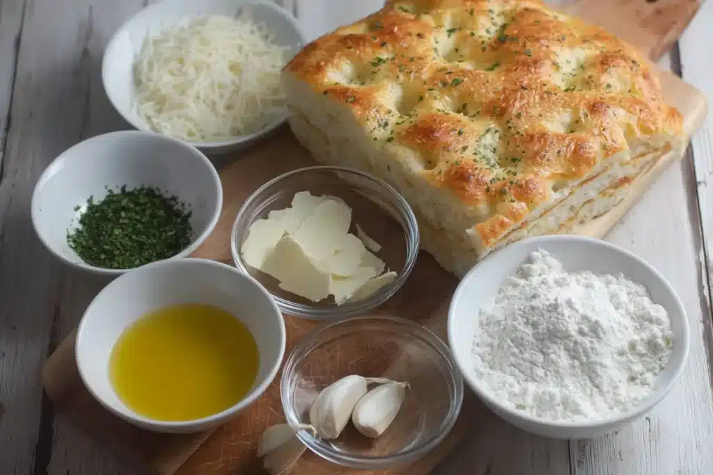 All you need for this Cheesy Garlic Focaccia Bread are a few simple pantry staples and a little patience! But first, gather up these essential ingredients: