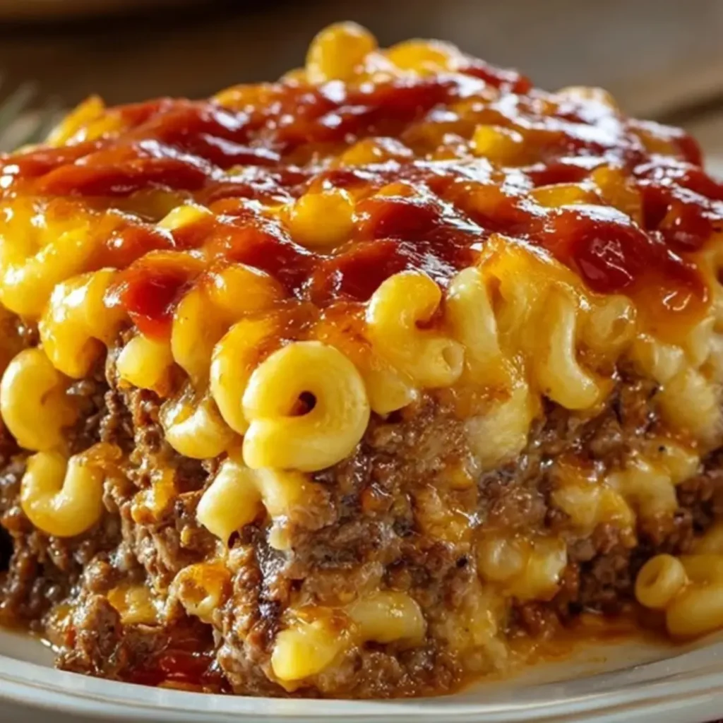 This Cheesy Macaroni Meatloaf Bake combines two classic comfort foods — creamy mac and cheese and juicy meatloaf — into one delicious, family-friendly casserole.