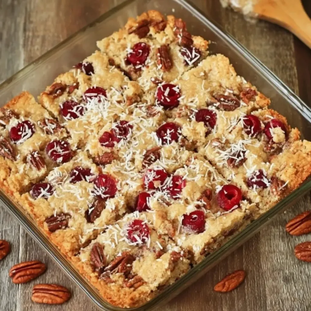 - A Textural Dream: These bars deliver on every front! You get the crunch from the pecans, the chew from the coconut and cherries, and the soft crumble of that buttery base.