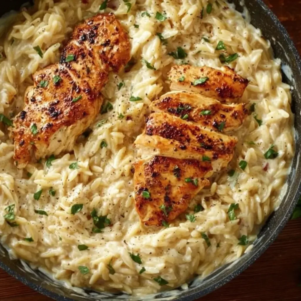Creamy Garlic Parmesan Chicken Alfredo Orzo