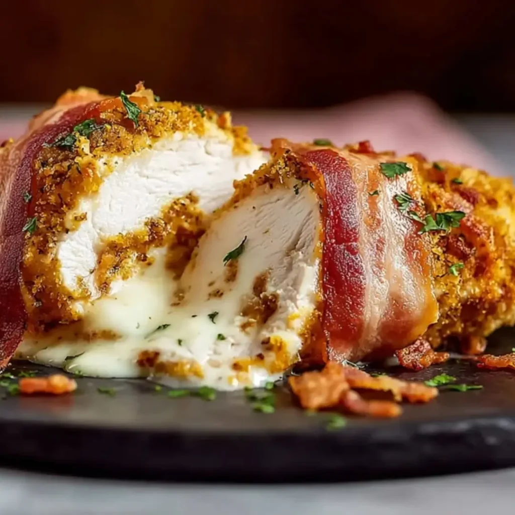 Looking for a dinner that feels like a total gourmet treat but is secretly so easy to whip up? You’ve found it! These stuffed chicken breasts are the ultimate crowd-pleaser—we’re talking juicy chicken, a molten, creamy cheese center, and the salty, smoky crunch of turkey bacon. Trust me, you’re going to love this; it’s one of those “hero” recipes that makes you feel like a pro chef in your own kitchen!