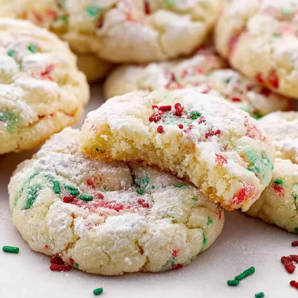 - Festive and Bright: The contrast of the snowy white powdered sugar and the vibrant red and green sprinkles makes these look stunning on any cookie swap platter.