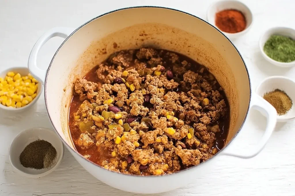 - Corn Kernels: A pop of color and natural sweetness that balances out the savory spice of the chili.