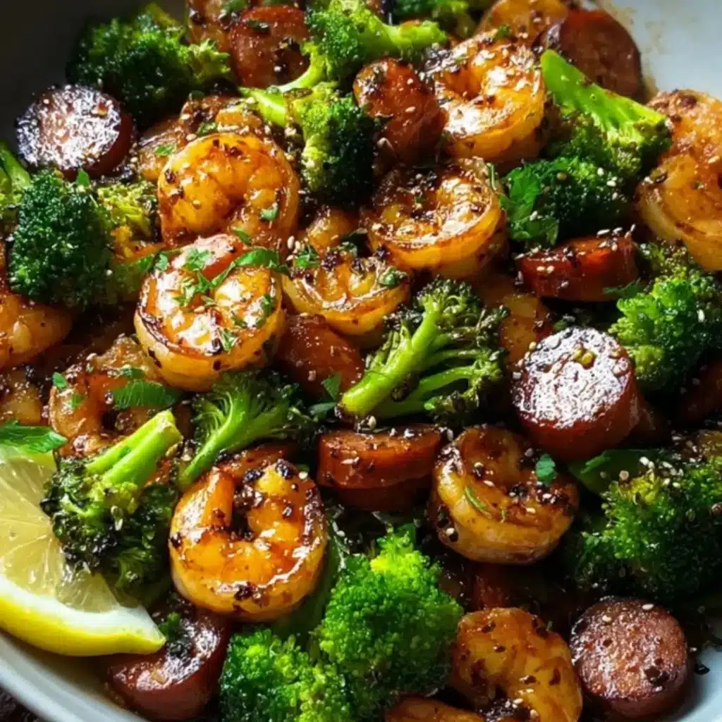 Honey Garlic Shrimp, Sausage, and Broccoli