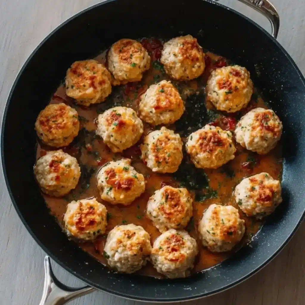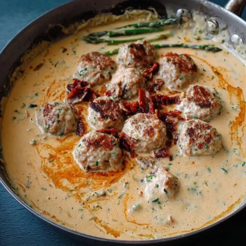 - Return the meatballs to the skillet, coating them in the creamy sauce.
