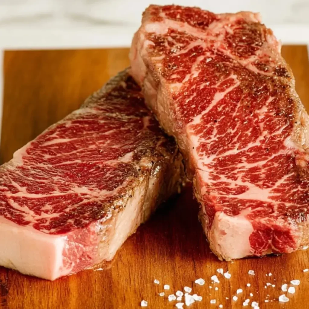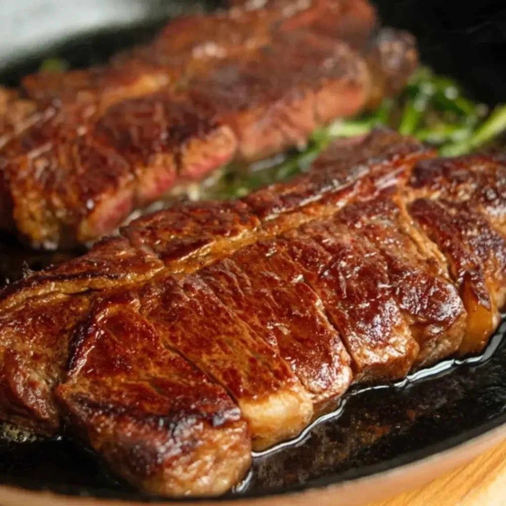 The most reliable way to check doneness is by using a meat thermometer! For a 1-inch steak seared for 3-4 minutes per side: Rare is $125^{\circ}\text{F}$, Medium-Rare is $135^{\circ}\text{F}$ (which is my personal fave!), Medium is $145^{\circ}\text{F}$, and Medium-Well is $150^{\circ}\text{F}$. Remember, the temperature will rise about $5^{\circ}\text{F}$ while the steak rests, so pull it slightly early!