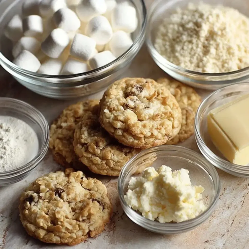 All you need for this Marshmallow Crispy Cookie Recipe is some basic pantry staples, a little bit of butter, and that irresistible trio of crunch, chew, and chocolate! But first, gather up these key components: