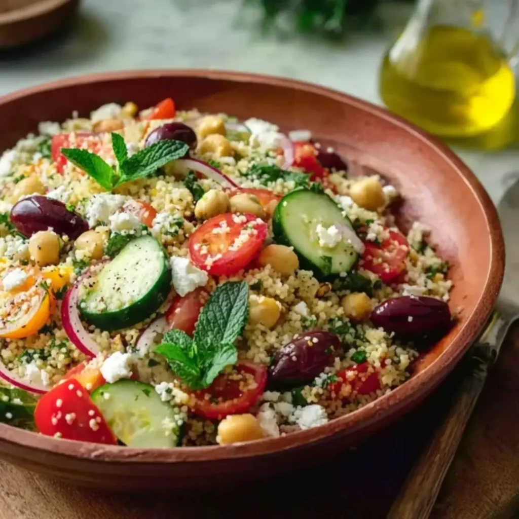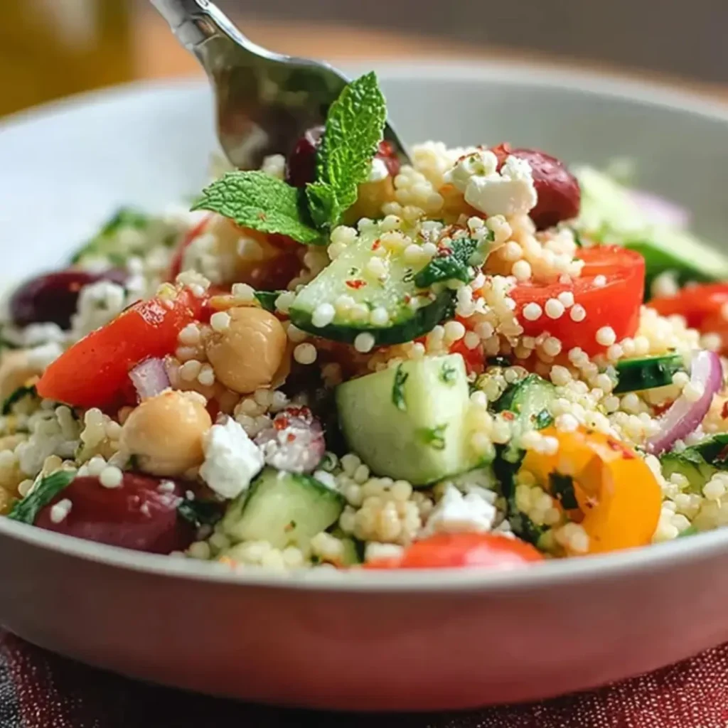 This Mediterranean Couscous Salad is a total sunshine-in-a-bowl situation! It’s the ultimate “no-cook” wonder that combines fluffy grains with the crunch of fresh veggies and the salty pop of feta and olives. Whether you’re looking for a vibrant lunch to brighten up your workday or a crowd-pleasing side for your next BBQ, this salad is about to become your new go-to. Trust me, you’re going to love how the zesty lemon dressing ties everything together for a bite that is truly unreal!