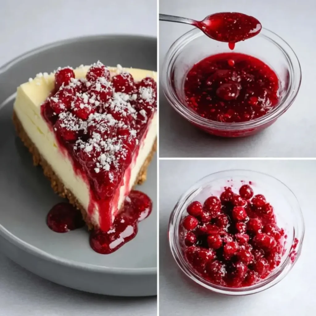Warm the raspberry jam slightly, then spread it over the top. Garnish with fresh raspberries and a sprinkle of white chocolate shavings. Slice, serve, and enjoy every creamy bite.