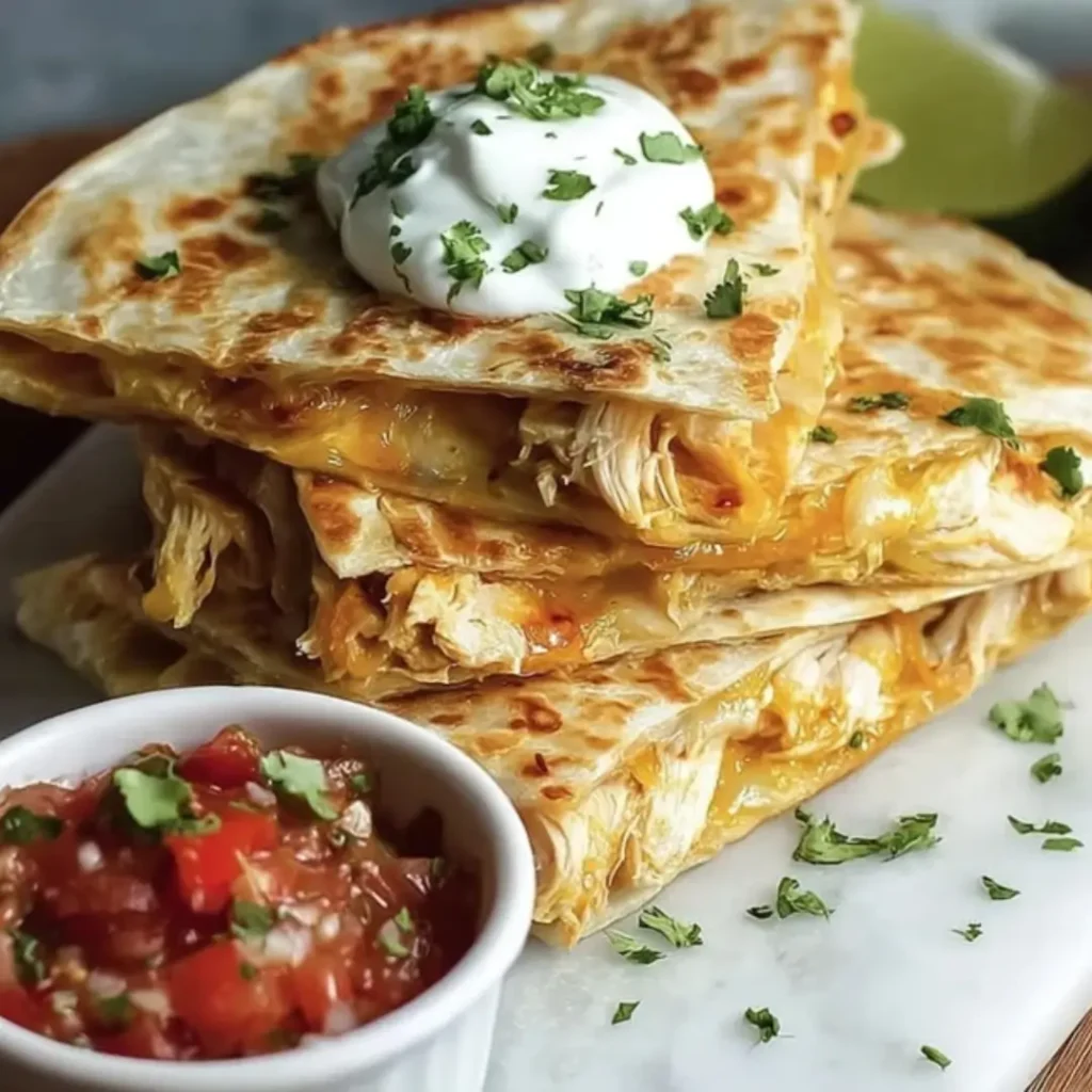 • Don’t Overfill: It’s tempting to pile the chicken sky-high, but keeping the layer relatively flat ensures the quesadilla stays together when you flip it.