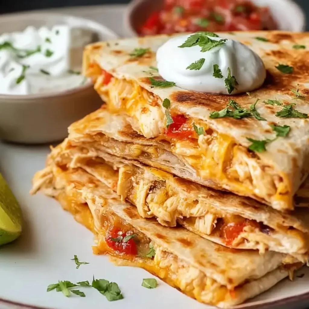 Quick and easy chicken quesadillas loaded with seasoned chicken, melted cheese, and fresh vegetables. Perfect for a fast lunch or weeknight dinner.