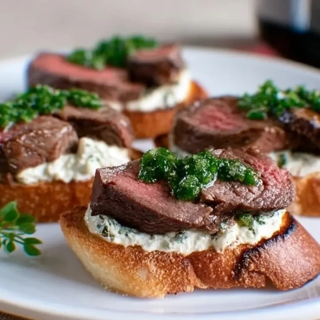 For any leftover steak, you can gently warm it in a skillet over low heat or in the microwave until just warm to avoid overcooking. If the assembled crostini have softened, a quick refresh in a toaster oven for a few minutes can help crisp up the baguette again, but be mindful not to burn the cheese. My personal tip? If the crostini are a day old, sometimes a light sprinkle of fresh chives after warming them can bring back that fresh, vibrant flavor!