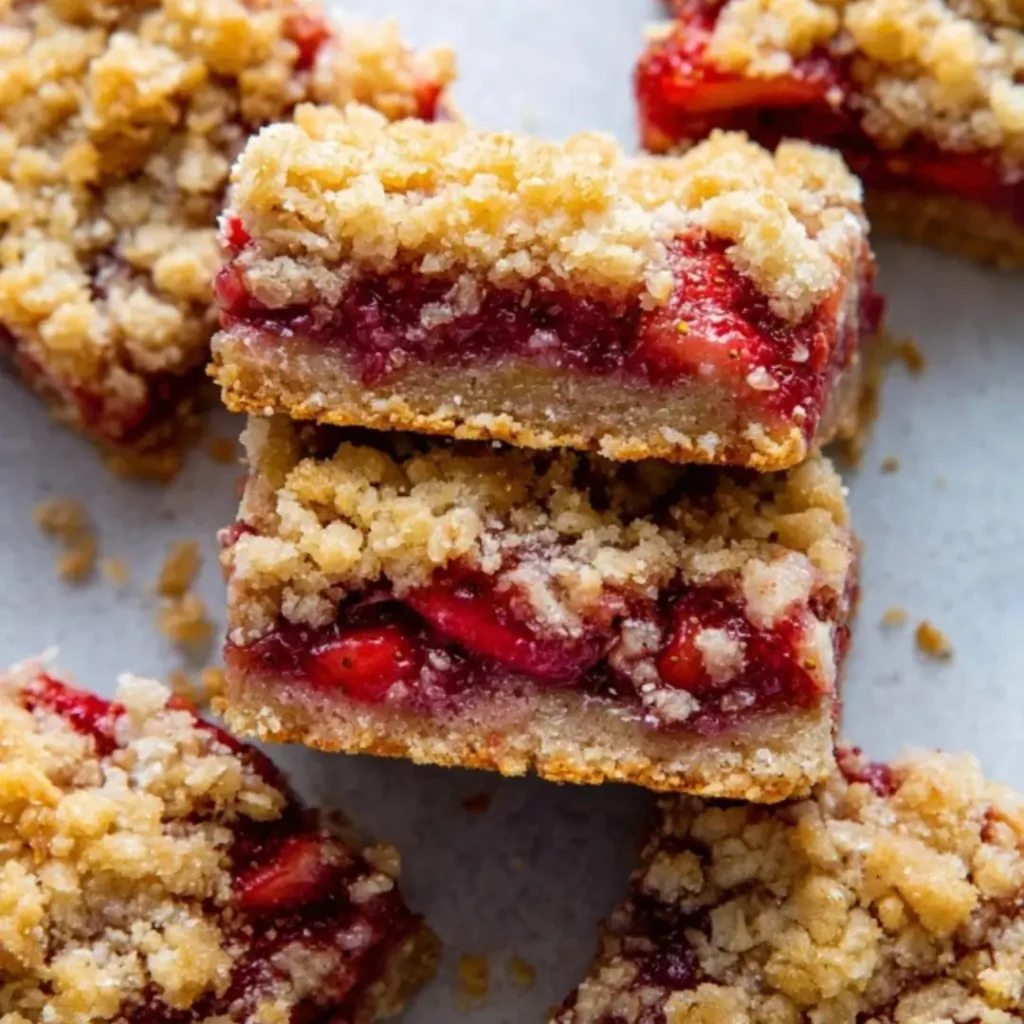 Strawberry Oatmeal Crumble Bars with a Golden Oat Topping