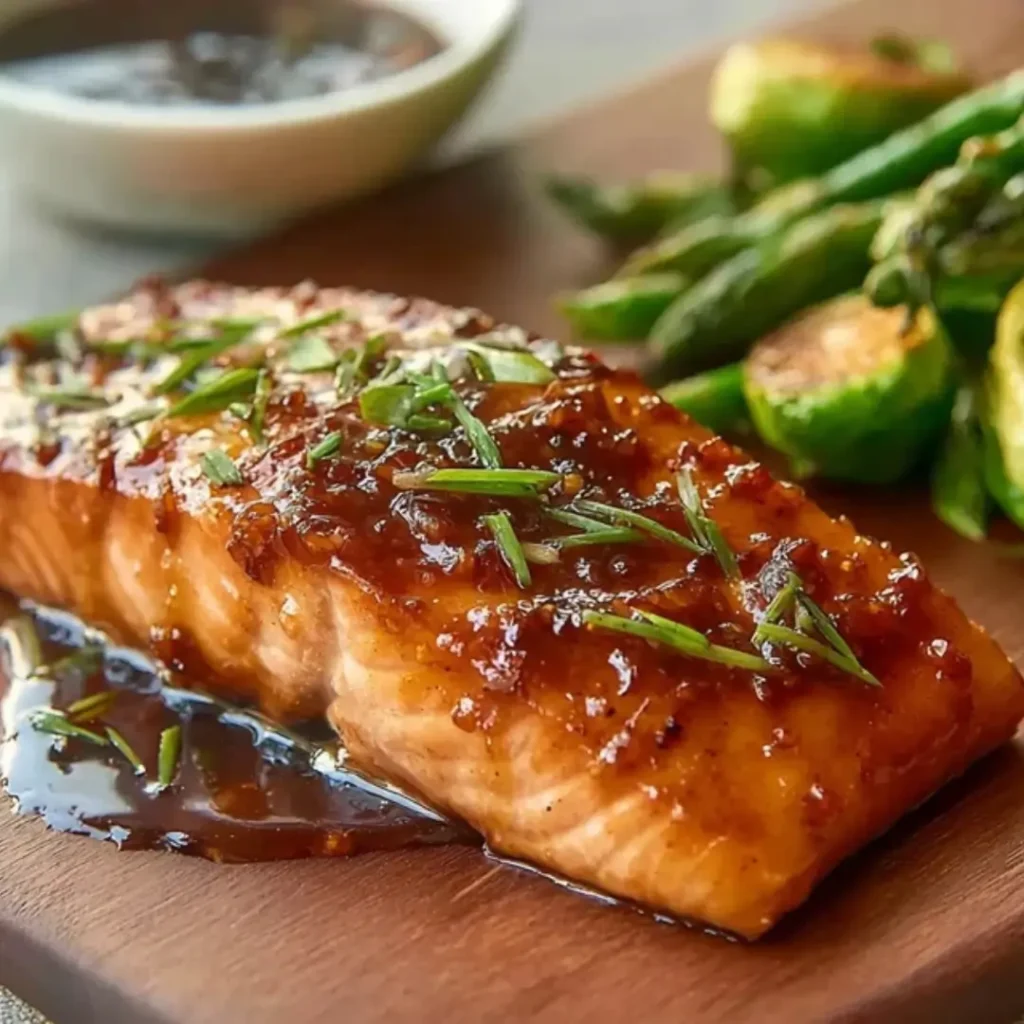 4. Can I bake this instead of pan-searing? You can! Bake the seasoned salmon at 400°F for 12–15 minutes. While it bakes, simmer the glaze in a small saucepan on the stove, then pour it over the fish for the last 2 minutes of baking.